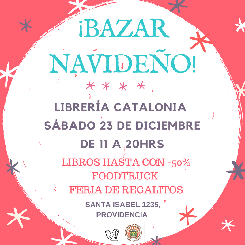 5. Sábado 23 diciembre: 11:00 a 20:00 hrs. Bazar navideño en Catalonia: 20% en libros de la editorial y mesones de oferta con libros desde $2000.